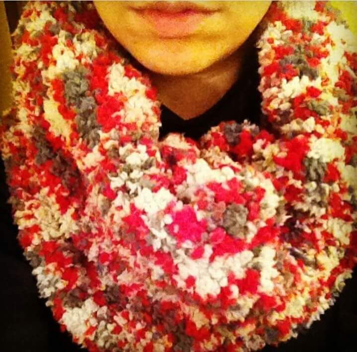 Πολύχρωμο χειροποίητο πλεκτό κασκόλ λαιμού (ροζ, γκρι, λευκό)