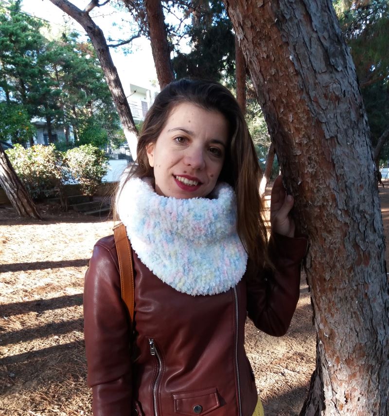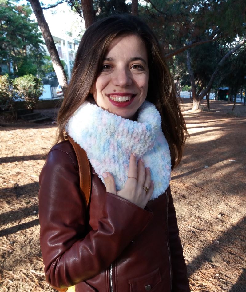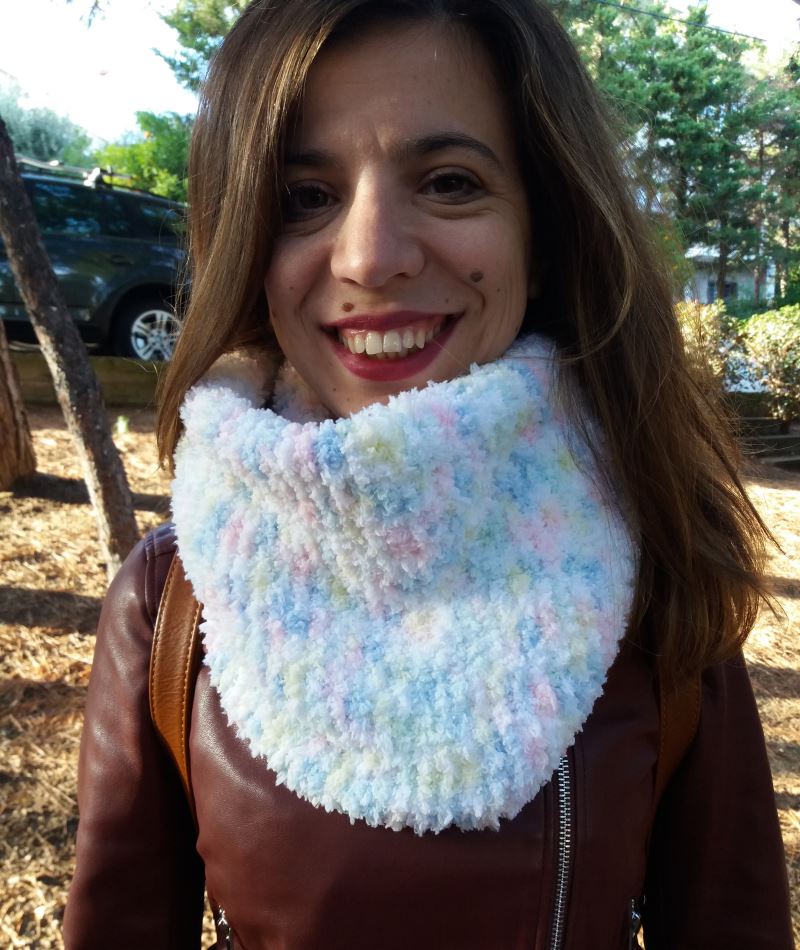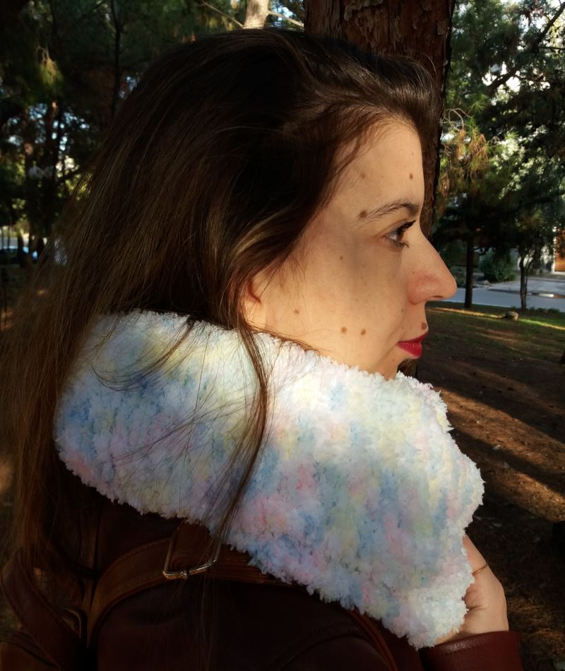 Πολύχρωμο χειροποίητο πλεκτό κασκόλ λαιμού με το λευκό να κυριαρχεί
